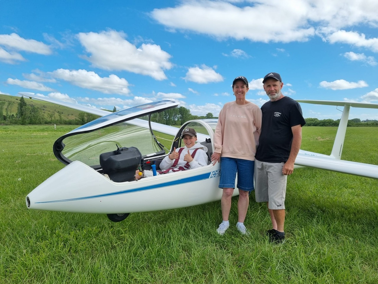 First solo age 14 years. Pictured with Mum & Dad, Suz and Tony.