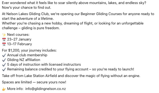 For more gliders and other gliding stuff you can check out the GNZ classifieds at the link below.