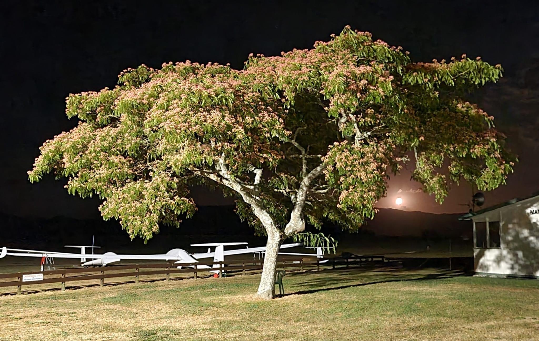 Words from Noel Johnson "There was sufficient left over - almost - for Ann and me to purchase a silk tree from the Garden Centre next door to us in Tauranga. This tree was planted one afternoon with a small group of people (including Tony and Julie Timmermans and Rae Insoll, widow of Piako member Raef Insoll) in attendance. It was planted not far from the clubhouse with the intention that, years to come, it might provide a shady place on a summers day - a place to sup a quiet ale at the end of a days flying. It was planted as The Tree of Remberance in memory of those pilots that we had known who fly no more."