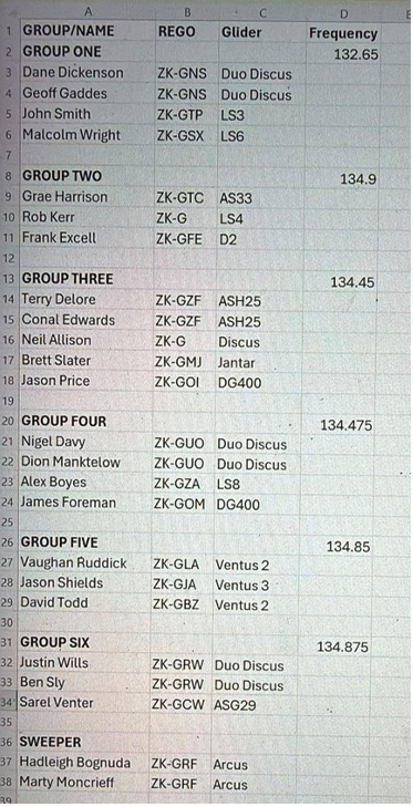A: Terry and Conal from Auckland in the Ash, Brett in the Jantar, Jason in the DG400 and me in the Discus.