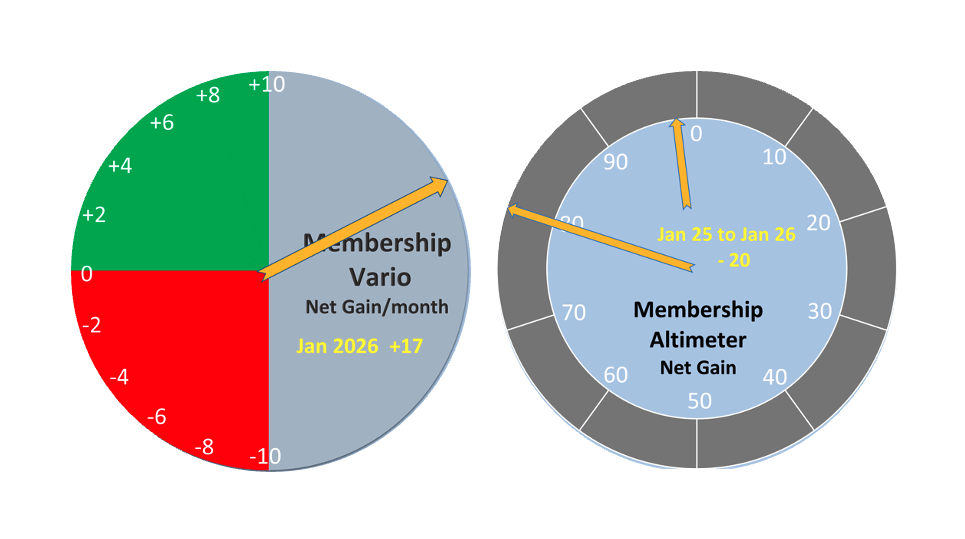 What a great time of year this is. Clubs are active and visible in their communities and lots of people are wanting to experience gliding and some of these are joining clubs and starting their flying journey. Following on from last months net gain of 25 we have had another good month with a net gain of 17. I wonder if before the end of financial year in two months time we can have a net gain of more than 20 new members and finish with a year of membership growth? If you have a friend that is interested in flying and what you do why not invite them along to the club.